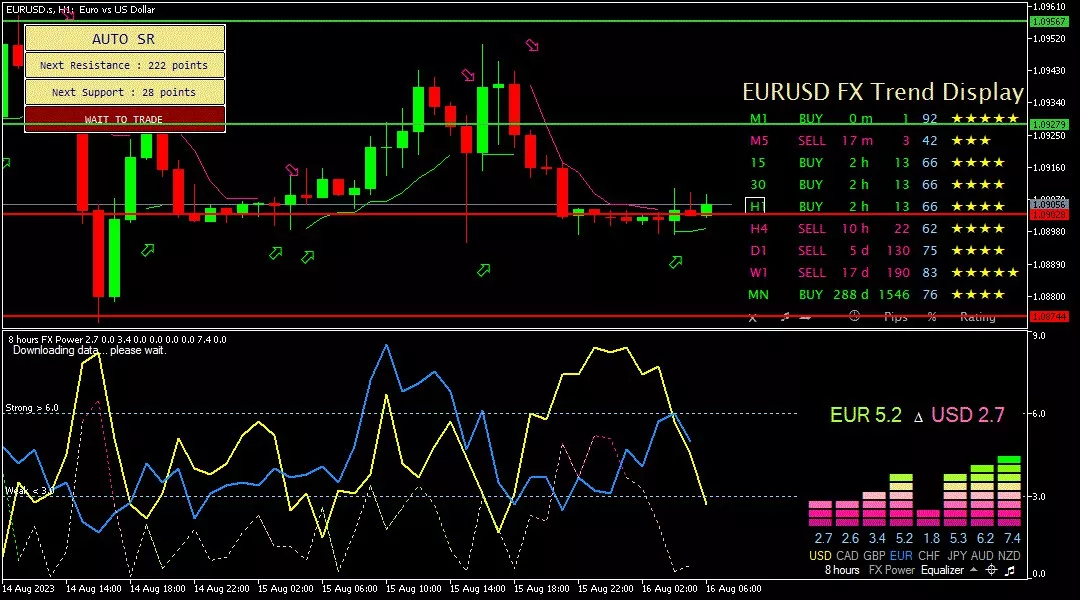 Analisa harian teknikal untuk pair EUR/USD pada periode 1 jam mencoba bergerak naik, menyentuh level resistance di 1.09130 hingga menuju level resistance selanjutnya di 1.09680. Tren kenaikan juga terlihat dari template FXBot, dimana angka EUR lebih tinggi sebesar 5,2 dari angka USD yang sebesar 2,7. Sementara bias bullish juga didukung oleh sinyal buy yang ditunjukkan dengan tanda panah hijau.