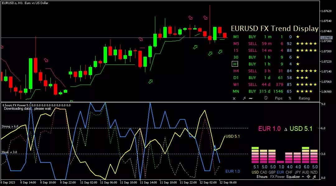 Analisa harian teknikal untuk pair EUR/USD pada periode 1 jam mencoba bergerak turun, menyentuh level support di 1.07310 hingga menuju level support selanjutnya di 1.07050. Tren penurunan juga terlihat dari template FXBot, dimana angka EUR lebih rendah sebesar 1,0 dari angka USD yang sebesar 5,1. Sementara bias masih bullish yang didukung oleh sinyal buy yang ditunjukkan dengan tanda panah hijau.