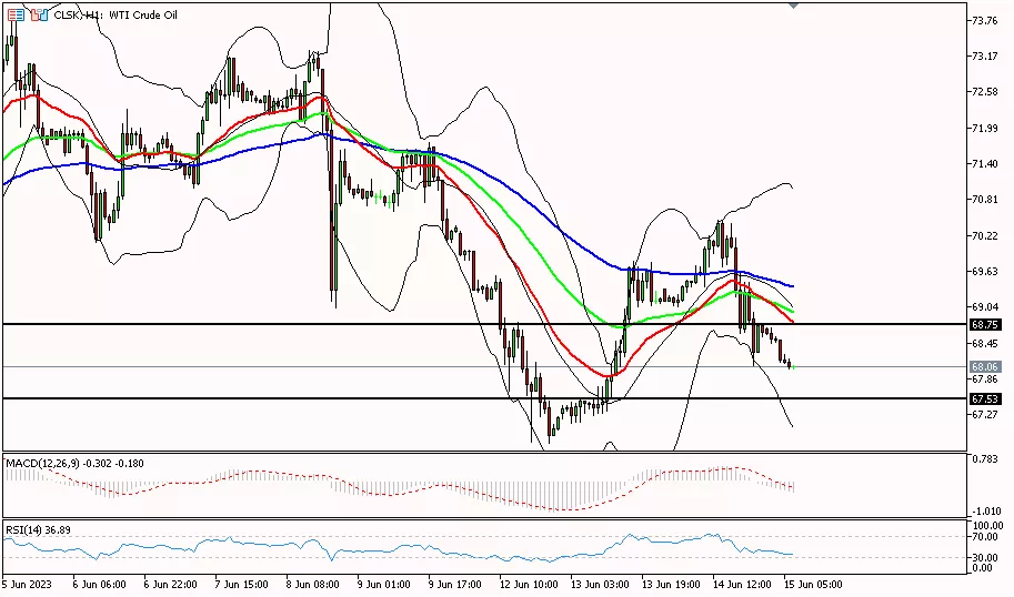 Analisa harian teknikal untuk harga minyak pada periode 1 jam mencoba bergerak turun, perlu melewati area support di 67.63 hingga menuju level support selanjutnya di 66.65. Sementara untuk merubah bias menjadi bullish, maka harga minyak perlu melewati level resistance di 68.75 hingga menuju level resistance selanjutnya di 70.03.
