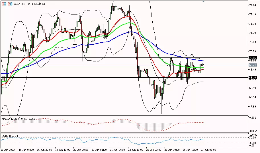 Harga minyak pada periode 1 jam mencoba bergerak naik, perlu melewati level resistance di 70.16 hingga menuju level resistance selanjutnya di 70.79. Sementara untuk bias bearish lebih lanjut, maka harga minyak perlu melewati level support di 69.40 kembali hingga menuju level support selanjutnya di 68.80.